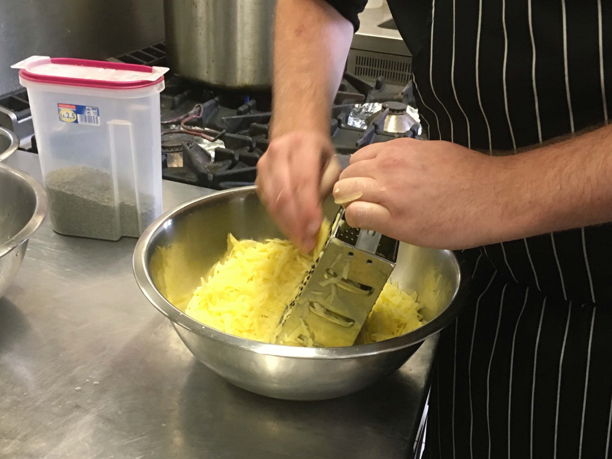 - Přidáme vejce, mouku, prolisovaný česnek.