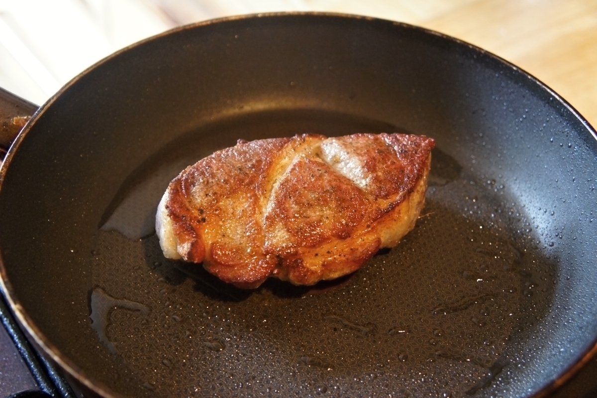 V pánvi rozpálíme sádlo a připravené marinované maso na něm z obou stran opečeme. Na opečeném mase se utvoří pikantní krusta.