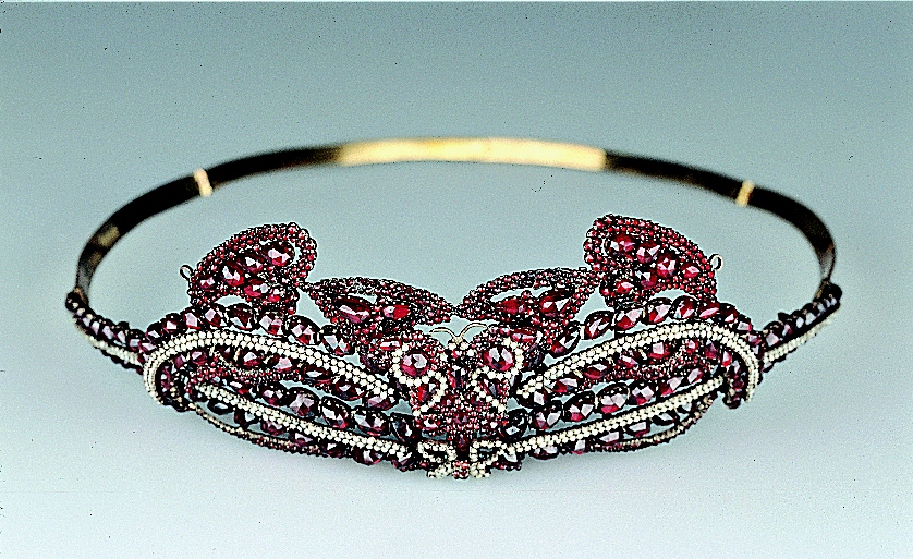K vidění jsou tu i historické unikáty jako například souprava granátových šperků v kombinaci s říčními perličkami – čelenka, náušnice a brož, o kterých se traduje, že je významný český politik 19. století František Ladislav Rieger věnoval jako svatební dar své ženě Marii.