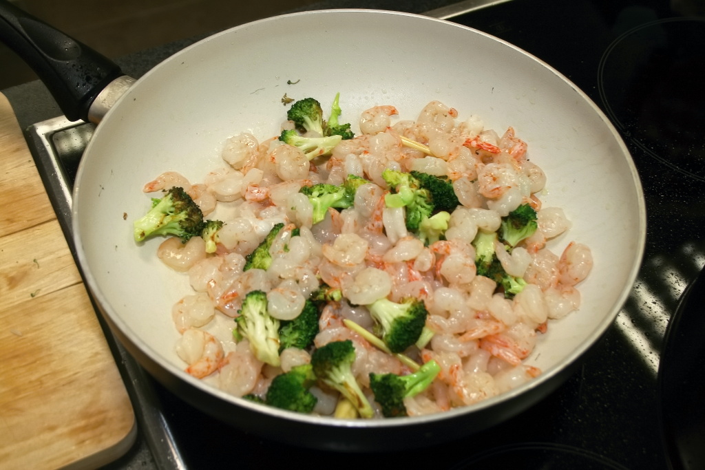 - Poté dáme krevety bokem.