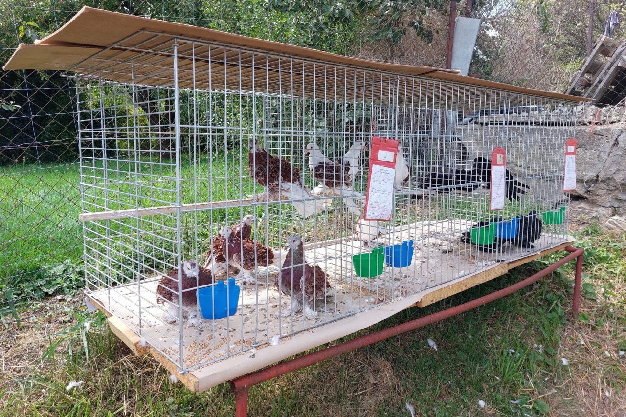 „To je červený bělouš, pak jsou červení štítníci, a pak černí tam jsou,“ ukazuje chovatel Jiří Kadlec do klece na okresní chovatelské výstavě v Puklicích na Jihlavsku. Jeho holubi mají nádherně kudrnaté peří na křídlech. Když ale vzpomíná na své začátky, mluví o českých stavácích. Už jako dítě školou povinné se staral o sto párů. „Měli jsme statek, měl jsem půl půdy zabraný,“ vzpomíná.