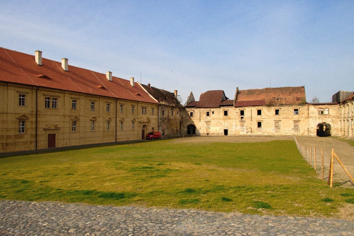 K zámku patří i rozsáhlý hospodářský dvůr, který dlouhá léta bez údržby i nevhodného využití dovedly k téměř absolutní zkáze. V roce 2025 se podařilo otevřít první opravenou část, sto padesát metrů dlouhé jižní křídlo, které je nejdelší světskou barokní stavbou u nás. V Zákupech je tak možné navštívit největší barokní konírnu v České republice. Její prostory uchvátily nejen návštěvníky, ale i občasnou průvodkyni, herečku Michaelu Dolinovou: