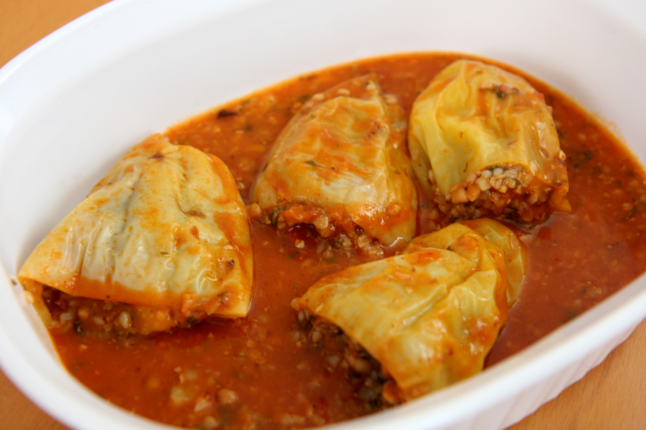 Poté přidáme protlak, mletou papriku, podle chuti osolíme a zalijeme cca 0,5 litrem vody. Přidáme naplněné papriky a dusíme cca 40 minut.