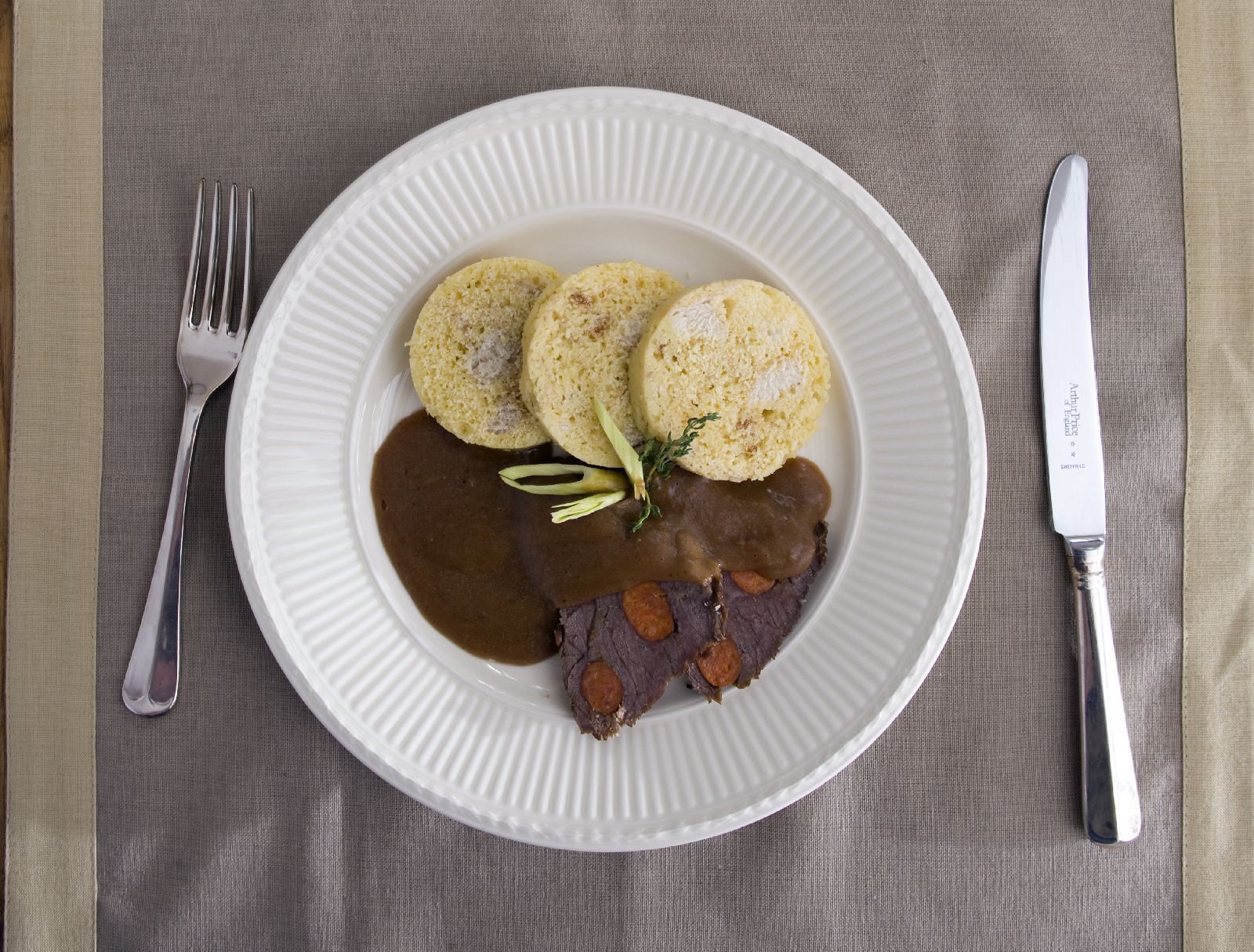 Doporučená příloha: bramborová buchta nebo kynutý knedlík, houskový knedlík, vařené hovězí maso apod.