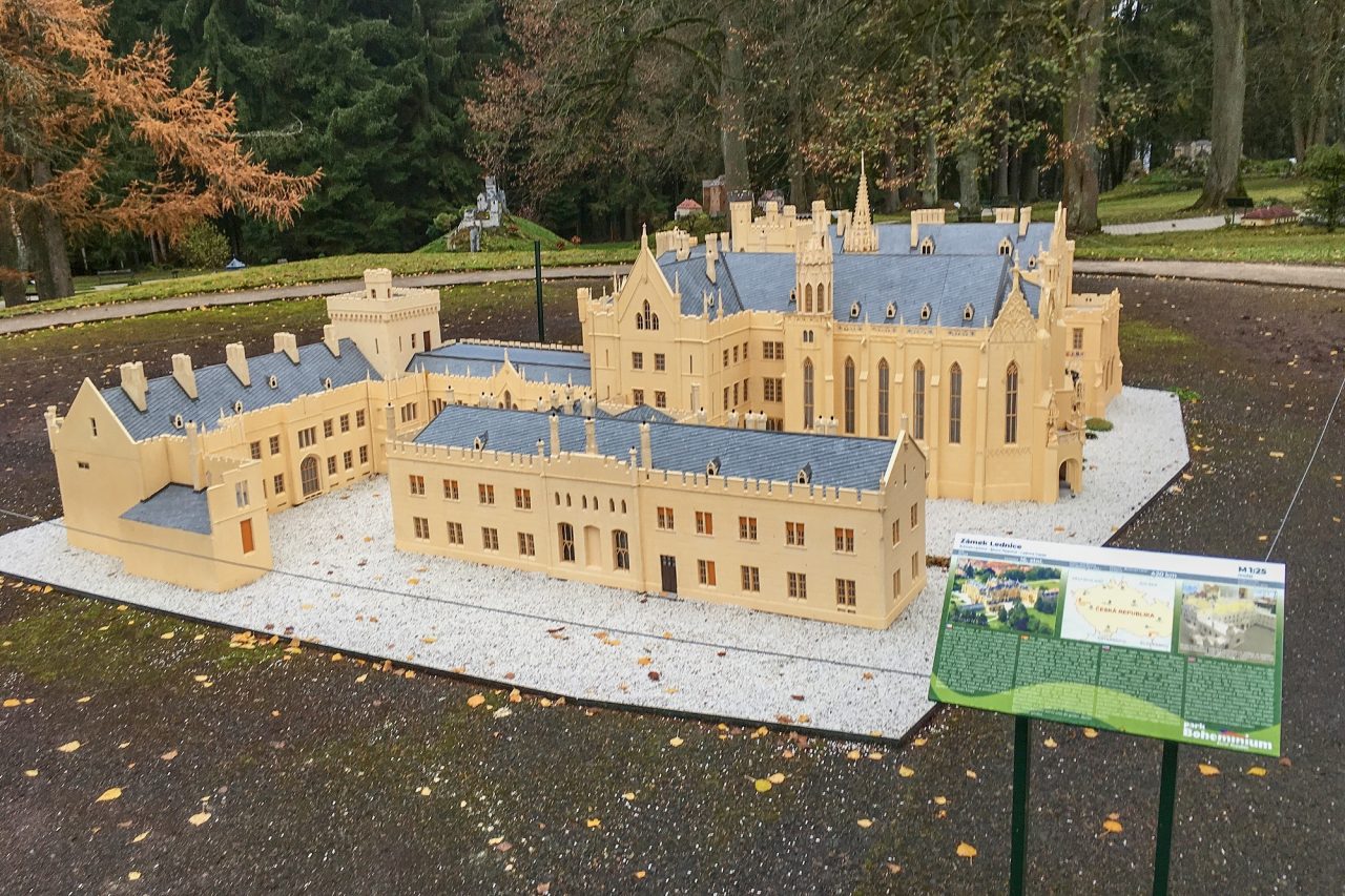 Zatím nejnovější stavbou v parku je zmenšená kopie zámku Lednice. Model se dokonce řadí k největším na světě. Jeho rozměry jsou obdivuhodné - délka osm a půl a šířka pět a půl metru. Celková rozloha je tak více než 47 metrů čtverečních. Na jeho výrobě pracovalo dvanáct modelářů, malířů a řemeslníků, a to přes osm měsíců.